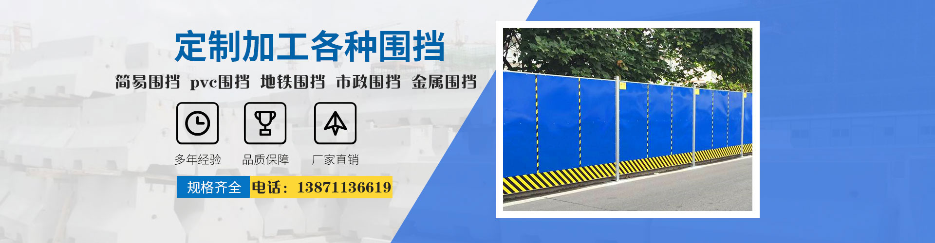 歡迎進(jìn)入湖北章輝泓宇工程有限公司網(wǎng)站,公司主營(yíng)各類簡(jiǎn)易圍擋產(chǎn)品,歡迎咨詢!